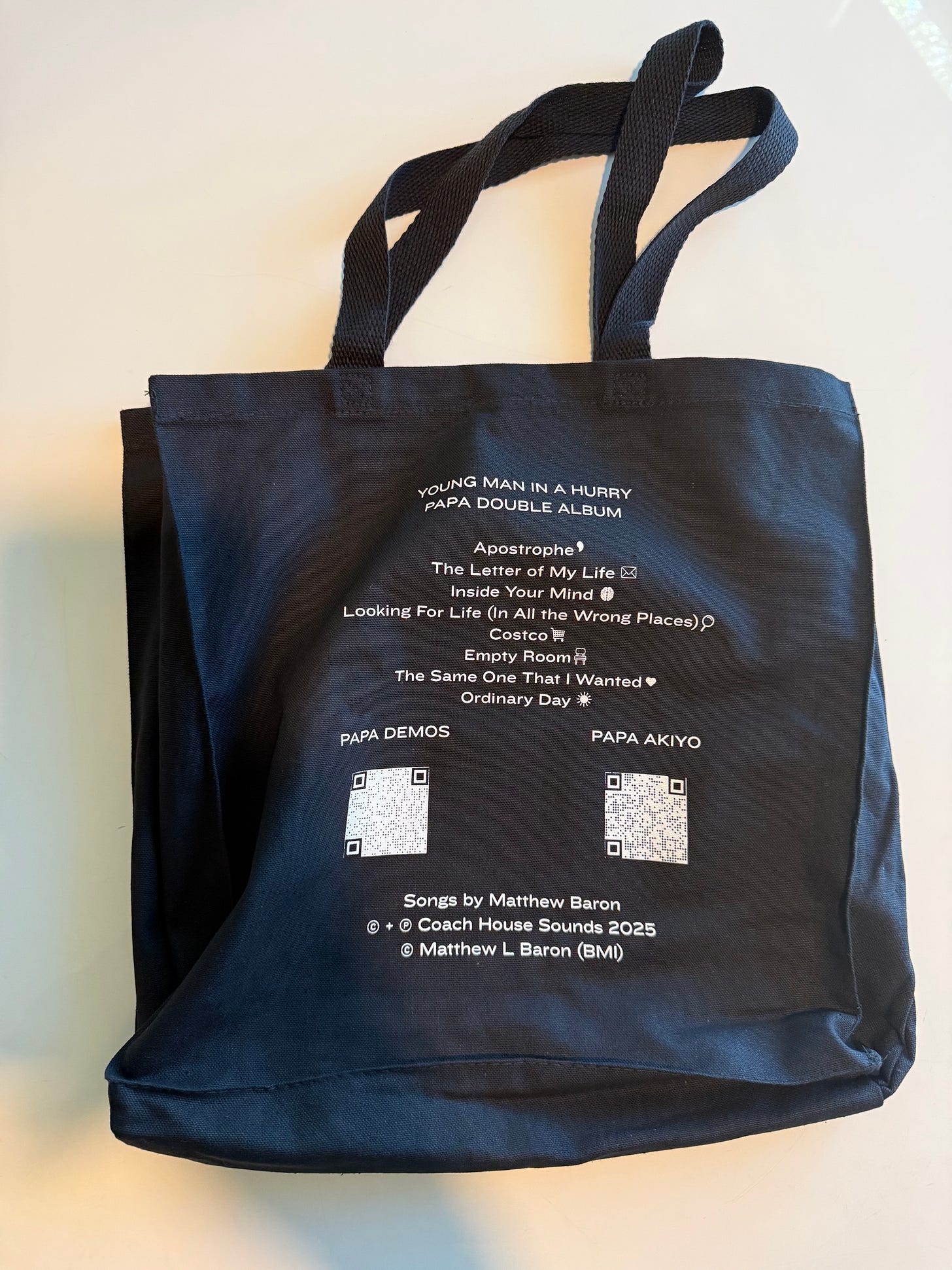 I made a bunch of cool merch for the YMIAH concert, and I spent a ton of time with a designer to perfect the vision I had to release the record as a tote bag and t-shirt. Not many people seemed to get it or like it (meaning I left the gig with as much merch as I came with). I lamented this to a friend recently, and he said just give it some time, people will come around. I hope so.